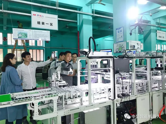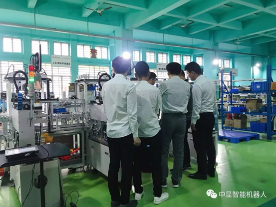 客戶一行首先參觀了生產車間,通過親眼目睹我司目前在造與調試中的設備,結合來訪前對我司在行業口碑調查,對于我司目前產品所展現的技術能力與走在行業前沿的創新能力給予高度肯定與嘉許,并對我司學習型工廠東莞“校中廠”與合肥“廠中校”兩地產教融合、雙元制、學徒制的深入校企合作運營模式,從而突破智能制造行業人才供需瓶頸表示非常贊許。