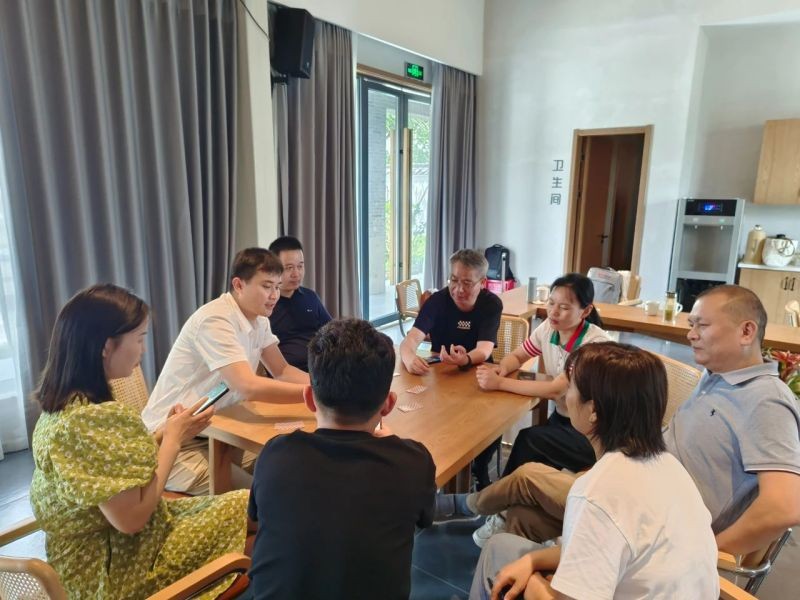 9日下午,團隊兵分兩路——“摜蛋組”與“羽毛球組”,不管是腦力運動還是體力運動,大家都來了一場全力以赴的團隊合作與對手“廝殺”,好不痛快!