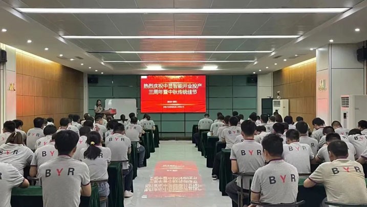 下午16點30分,中顯智能所有在廠員工齊聚二樓電教室,共同慶祝公司開業投產三周年。