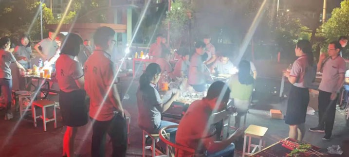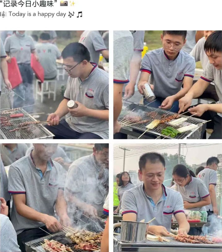 此時,中顯廣場上,音樂響起,小伙伴們熱情高漲,邊烤邊吃、互相指導,還不忘相互遞送烤好的成品,其樂融融,有說有笑,大家聊著自己在工作和生活中的各種奇聞軼事,享受著“自己動手、豐衣足食”的樂趣和滿足感。大家的熱情也隨著炭火一般,逐漸升溫,歡聲、笑聲不斷,放松著身體,喜悅著心情。